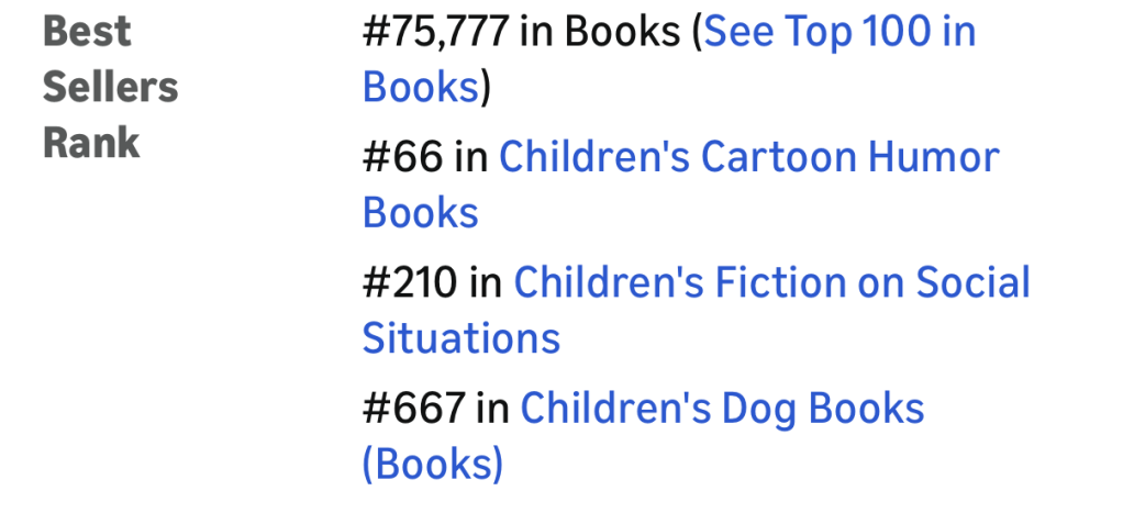 Smiley’s book went live just a few days ago and on January 17th it was oficially 7th in the very niche category of “New Releases in Children’s Fiction on Social Situations!”
